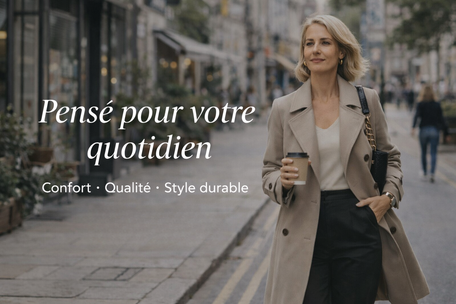 Notre vision est de proposer une mode moderne et intemporelle qui simplifie le quotidien, en offrant des pièces faciles à porter, durables et élégantes, pensées pour suivre le rythme de la vie urbaine.